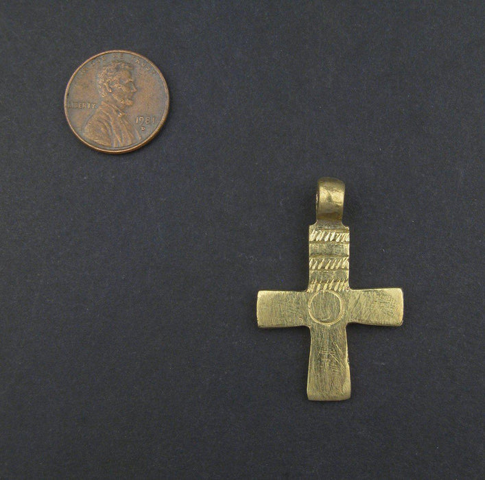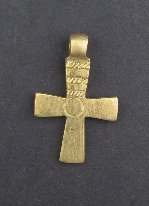 Brass Engraved Ethiopian Cross Pendant (Circle & Stripe)