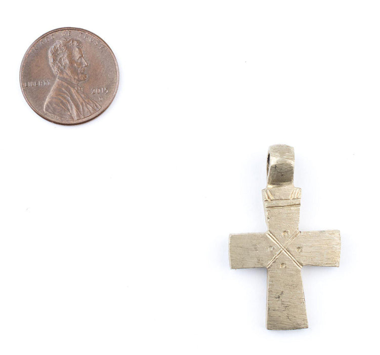 Brass Engraved Ethiopian Cross Pendant (Mini X)
