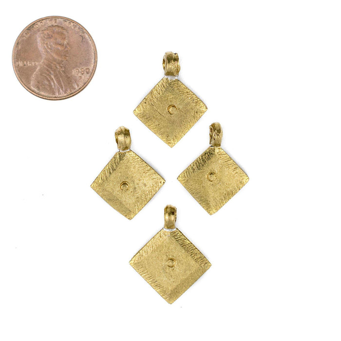 These small diamond-shaped brass ornaments are handmade in Ethiopia. Use them like charms on bracelets, for earrings, or just as a fun addition to your beaded jewelry. Each set includes 4 individual ornaments.
