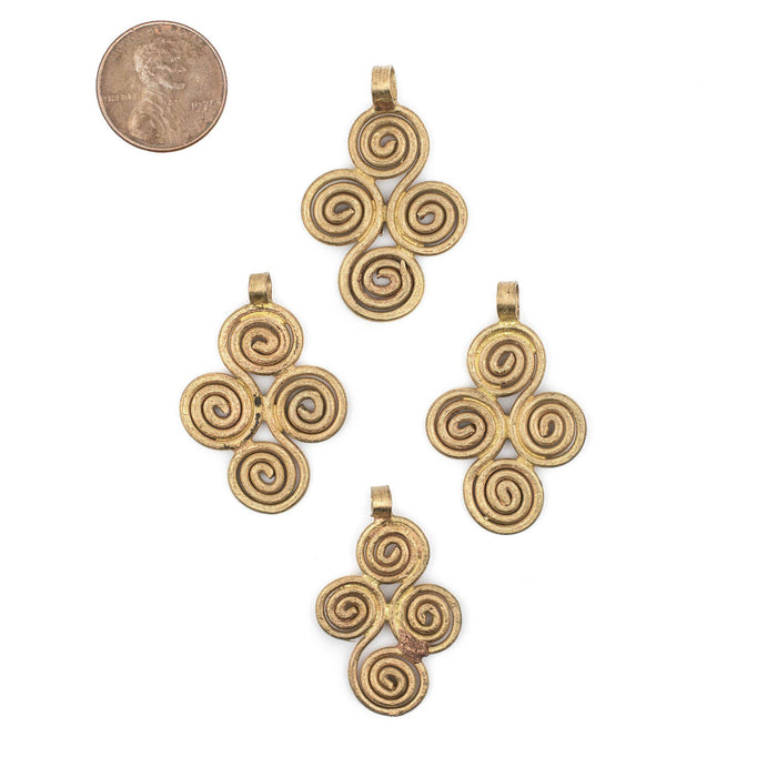 Brass Ethiopian Four Leaf Ornament Pendant (36x23mm)
