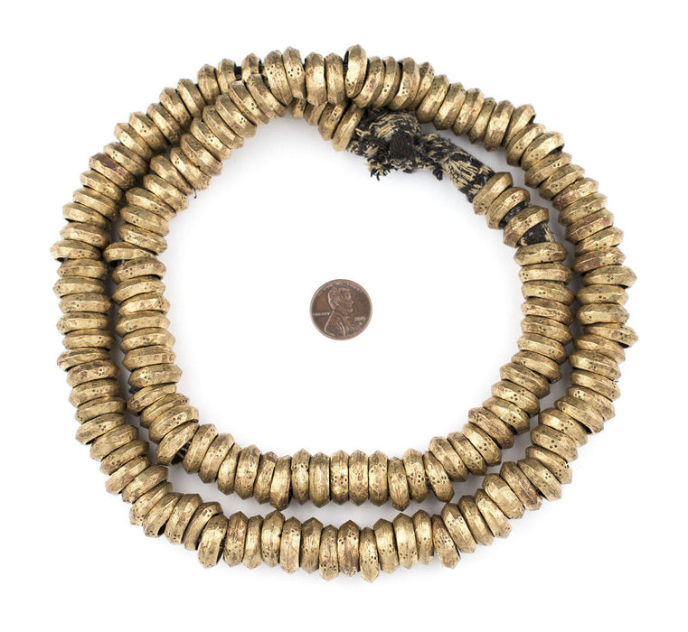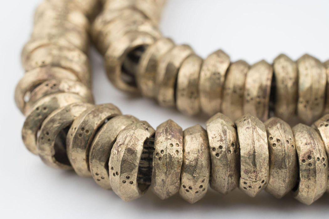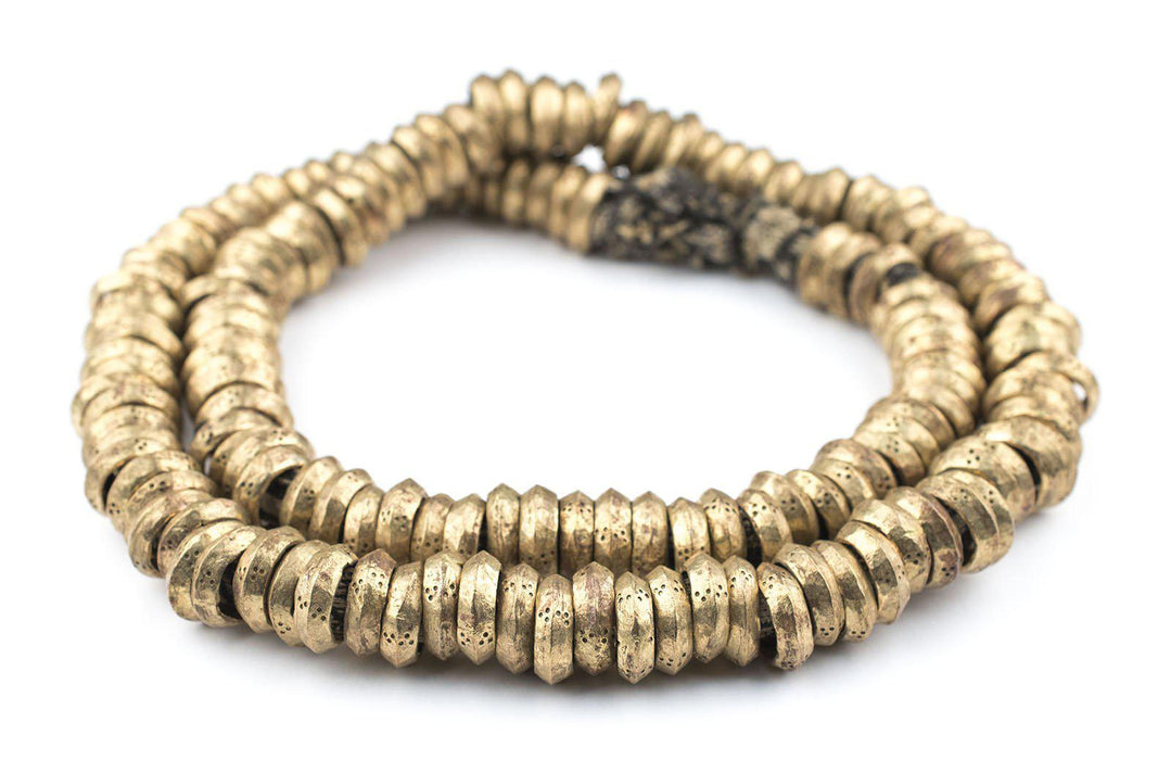 This exceptional strand of brass wollo rings was handmade in the Wollo region of Northern Ethiopian. Take note of its rustic appeal and ethnic character. These pendant are great to use as creative supplements to your ethnic jewelry designs. Each ring measures approximately 16-18mm in size, with a hole size of 10-11mm. You will receive approximately 150 rings on each strand. Great addition to your beading arsenal!