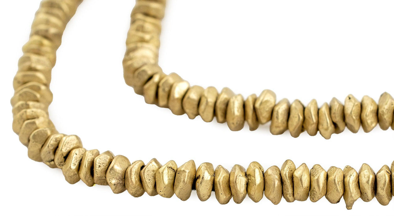 These chic Gold Nugget Beads are made from brass and have a striking gold finish. With a special shiny finish these beads will add just the right amount of sparkle to whatever design project you have in mind. Each bead measures approximately 3 x 7mm with a stringing hole size of roughly 2mm. You will receive a full strand measuring approximately 8.5" in length. With their eye-catching rounded nugget shape, these beads are perfect for adding unique texture and dazzle to necklaces, bracelets, earrings, and other pieces of jewelry.