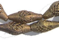 These Brass trade beads are from Ghana, Africa. Each bead is made individually through the "Lost Wax process" technique. The strand is about 30" long and the beads about 13mm in diameter and approx. 33mm long.
