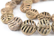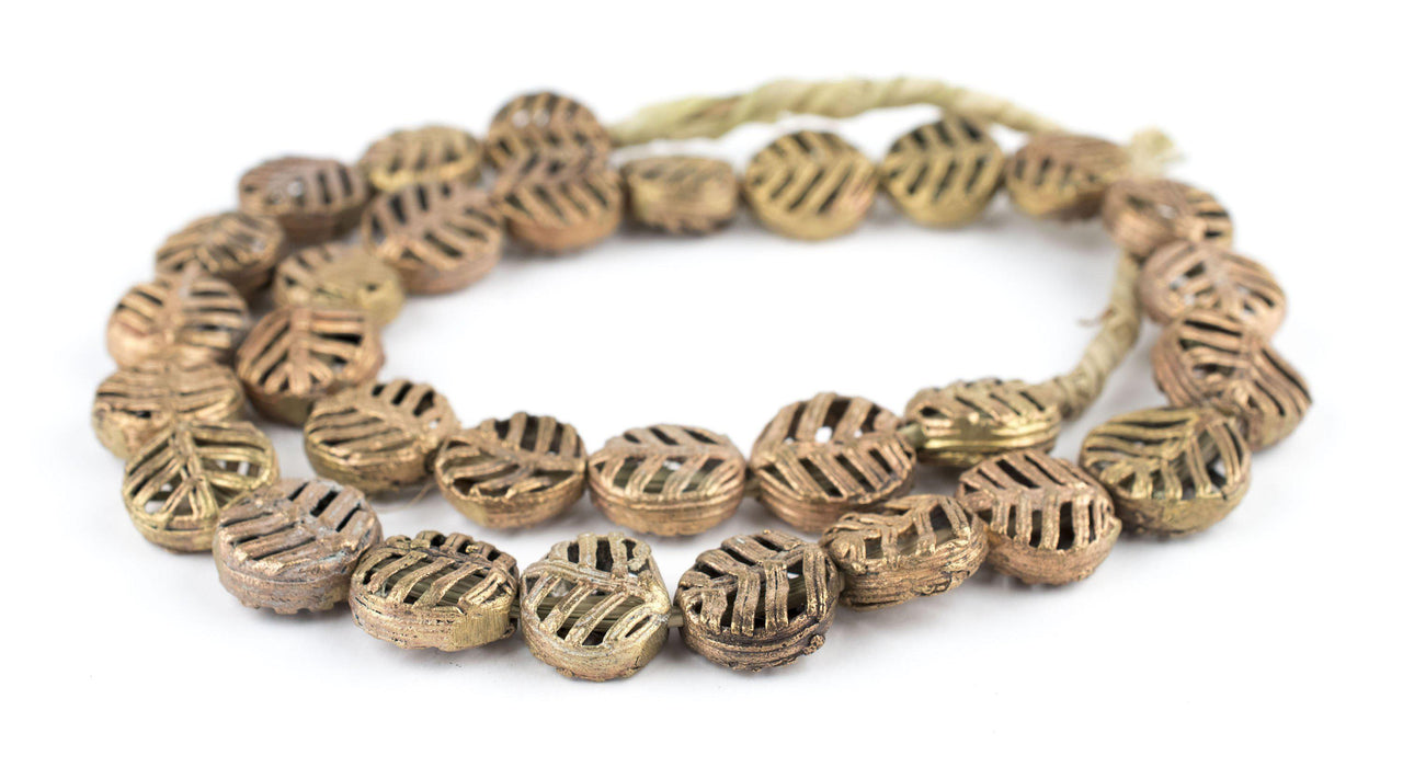 These Brass trade beads are from Ghana, Africa. Each bead is made individually through the "Lost Wax process" technique. The strand is about 28" long and the beads about 18mm in diameter.