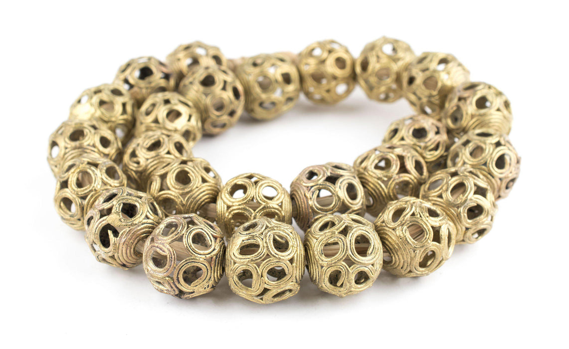 Take a look at these Brass "Globe" trade beads from Africa. Each bead is made individually through the "Lost Wax process" technique. The strand is approximately 26", with beads measuring 17-20mm in diameter and hole size of 4mm. Shade of brass may vary. Get yours today!