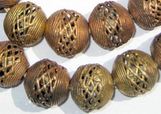 Take a look at these Brass "Globe" trade beads from Africa. Each bead is made individually through the "Lost Wax process" technique. The strand is over 24", with beads measuring 18 - 20mm in length.