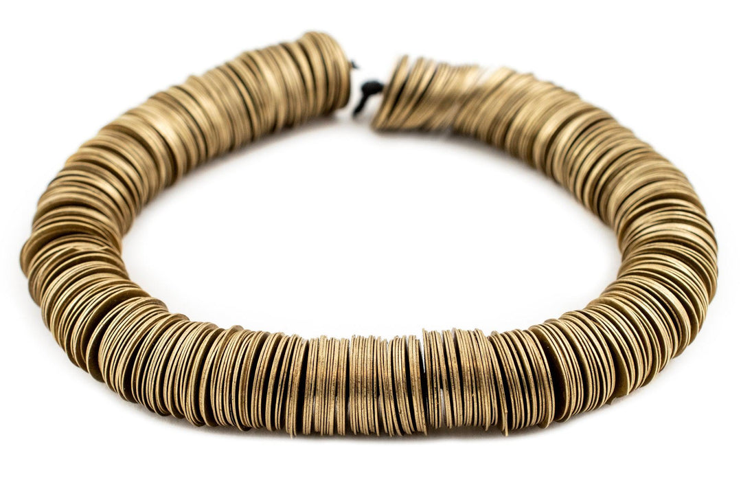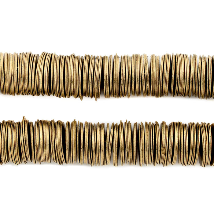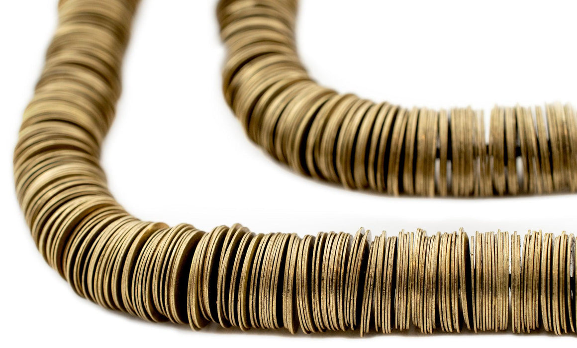 These Brass Heishi Beads will make a beautiful addition to your beading projects and jewelry designs. Each bead is perfectly flat with a smooth, polished finish. The brass color is natural and bright, perfect for any design aesthetic. With a versatile size and simple shape, these beads can add a subtle touch of texture to any jewelry piece. Great for chokers, bracelets, anklets, and even earrings. Each bead measures approximately 0.3 x 12mm with a hole size of about 1mm. You will receive one full strand measuring 9" in length. With all their useful qualities, these beads make a perfect way to express your style or to give as a DIY gift. Grab a few and upgrade your design kit.