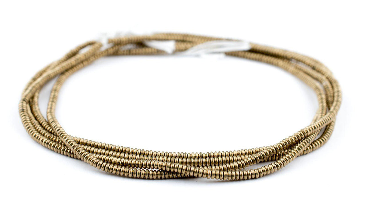 Take a look at this great strand of brass beads fashioned in a heishi shape. Each strand is 25" inches long with approximately 480 beads measuring 1 x 3mm diameter. These great beads are highly versatile and may be used as spacers or accents in your unique designs. A great addition to your beading toolkit! Color of beads may vary slightly from what you see on your screen due to screen contrast and lighting.