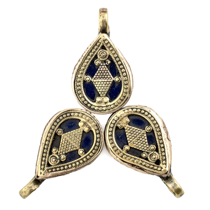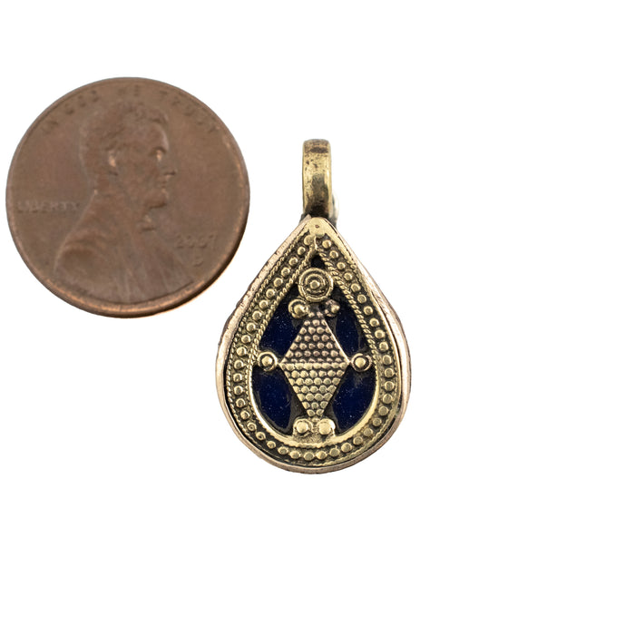 Brass Inlaid Blue Tear Drop Pendant (14x25mm)