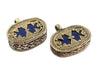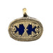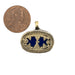 This handcrafted pendant will add a special touch to your unique designs. This decorative piece was crafted by a tribal artisan by encircling a blue glass core with a fancy brass bezel. Each pendant is unique and measures approximately 22-23 x 21-22mm with a bail hole size of 3-4mm. Limited supply!