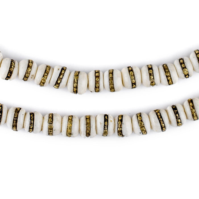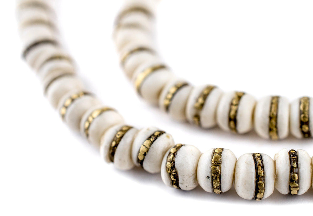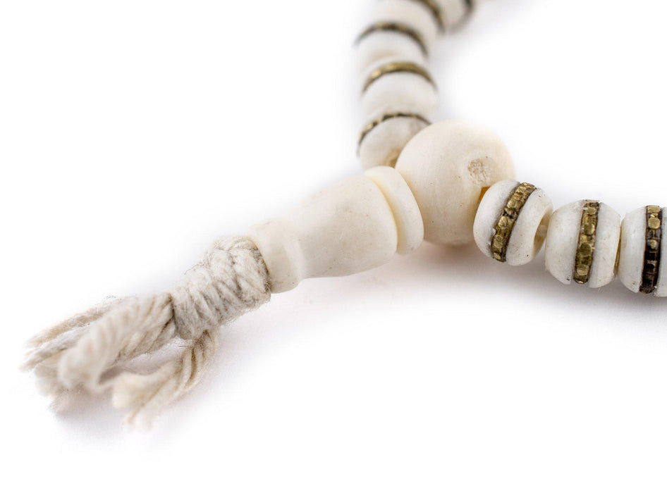 Brass-Inlaid White Bone Mala Beads (6mm)