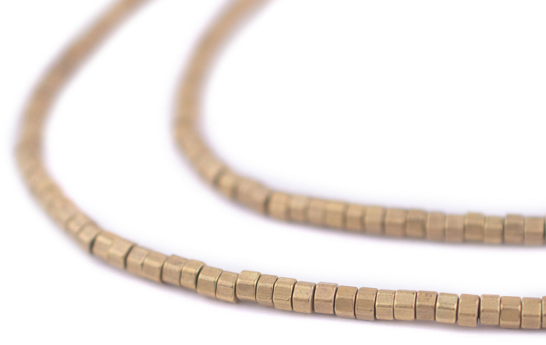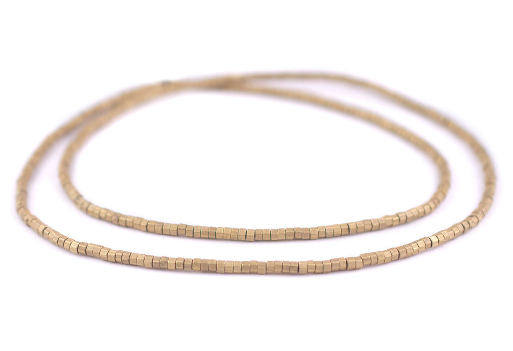 Beautiful strand of high quality, ethnic brass beads measuring 24" in length. Individual beads measure 1-2 x 2-3mm in size, with holes measuring approximately 1mm. Each strand includes approximately 340 beads. These highly versatile beads make great spacers, or may be used to accent your unique beaded designs. Feel the solid weight of these beads in your hands, and you'll surely appreciate their fine quality.