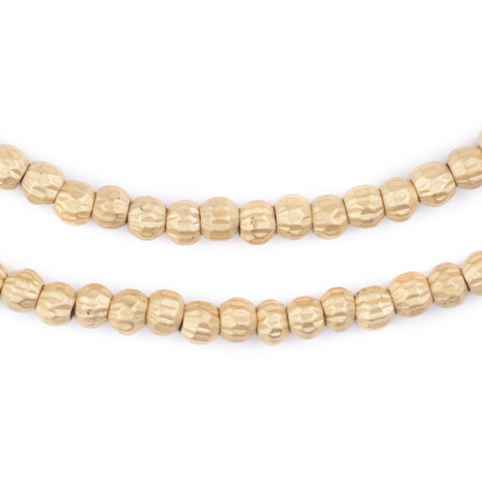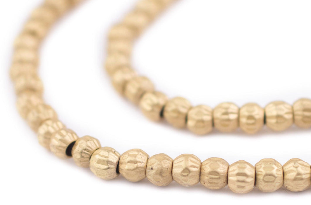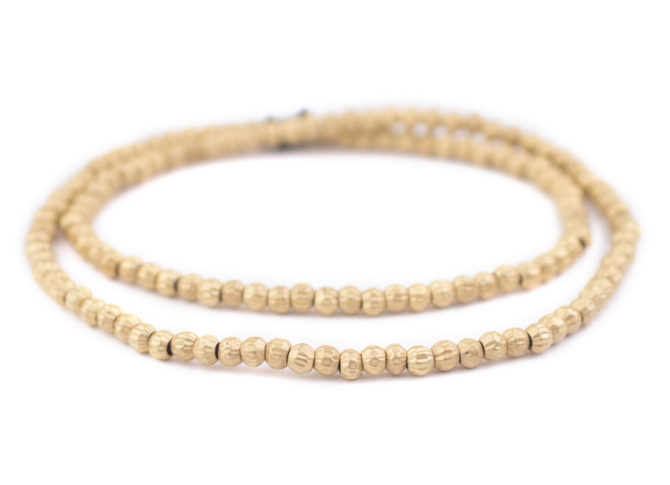 Beautiful strand of high quality, brass beads measuring 24" in length. Individual beads measure 4 x 5mm in size, with holes measuring approximately 1mm. Each strand includes approximately 135 beads. These highly versatile beads make great spacers, or may be used to accent your unique beaded designs. Feel the solid weight of these beads in your hands, and you'll surely appreciate their fine quality.