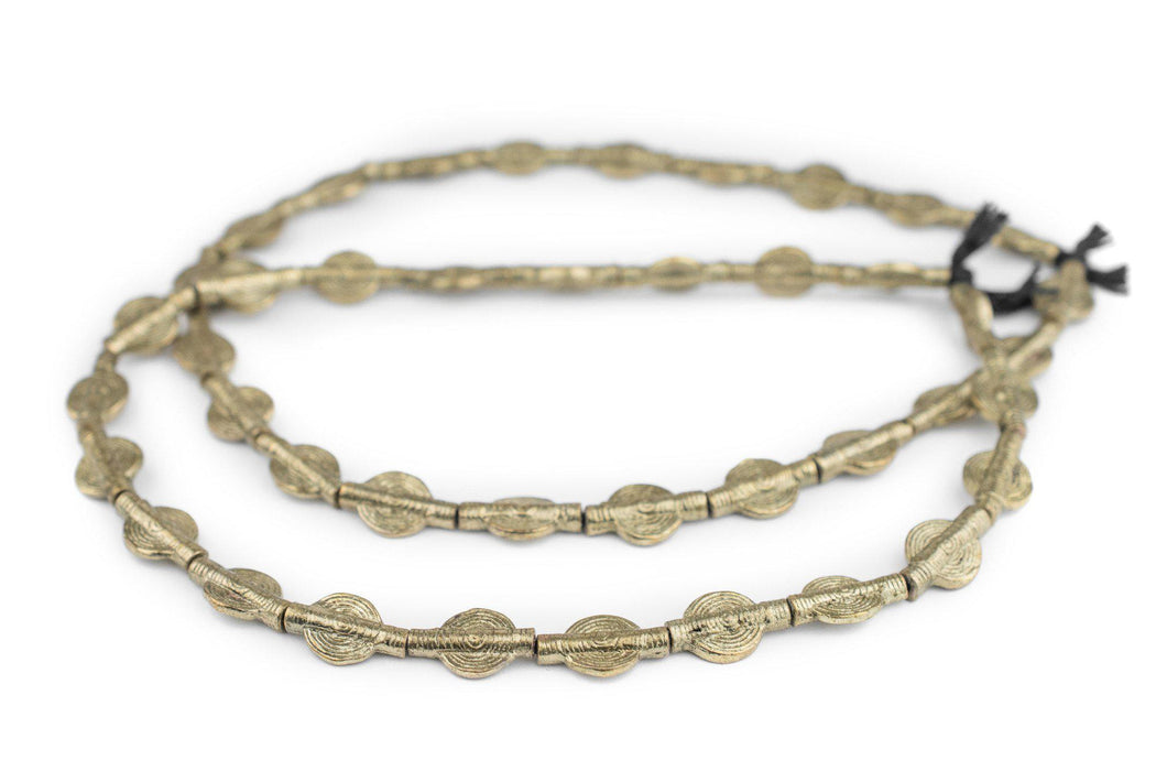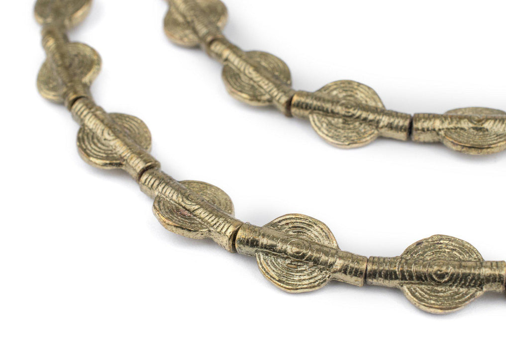 These beautiful brass beads are hand casted in the design of traditional Baule beads from the Ivory Coast. Increasingly difficult to find, Baule (also known as Baoule) tribal beads are some of the most unique casted beads from West Africa. Each bead measures approximately 20 x 12mm, with a hole size of approximately 2mm. Strand length is approximately 16". We've partnered with a special workshop to bring these unique treasures to you. Pay close attention to the detail and note the high quality finish of these special beads. Multiple strands pictured. Each strand sold individually. Get yours today!