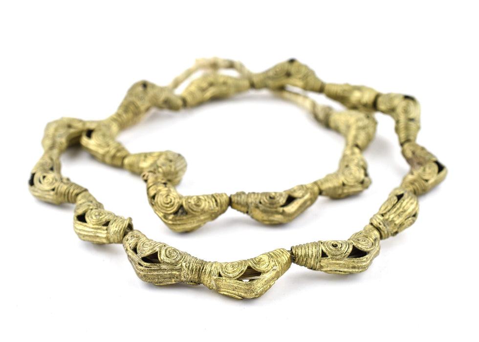 Cameroon-Style Elbow Brass Filigree Beads (28x12mm)