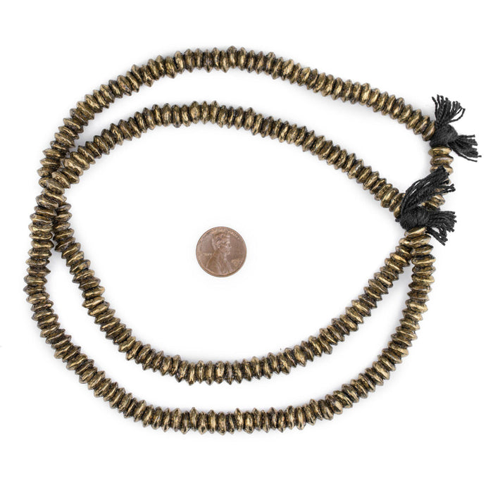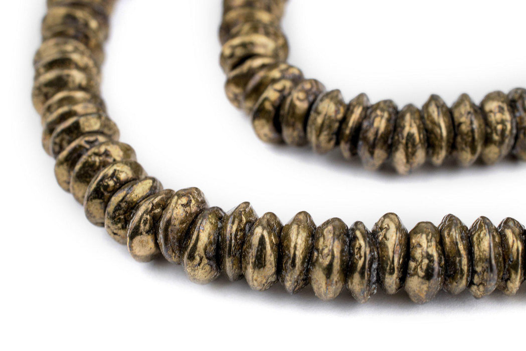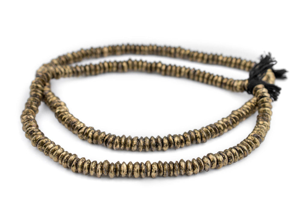 These rustic brass rings have been fashioned in a traditional African design. Each ring has its own character and is unique in shape. Great for your custom jewelry creations. Each ring measures approximately 9mm in diameter, and has a hole size of 5mm. You will receive over 100 rings for each strand you purchase, making this an exceptional value! Shade of brass may vary slightly from photo. Multiple strands pictured. Each strand sold individually.