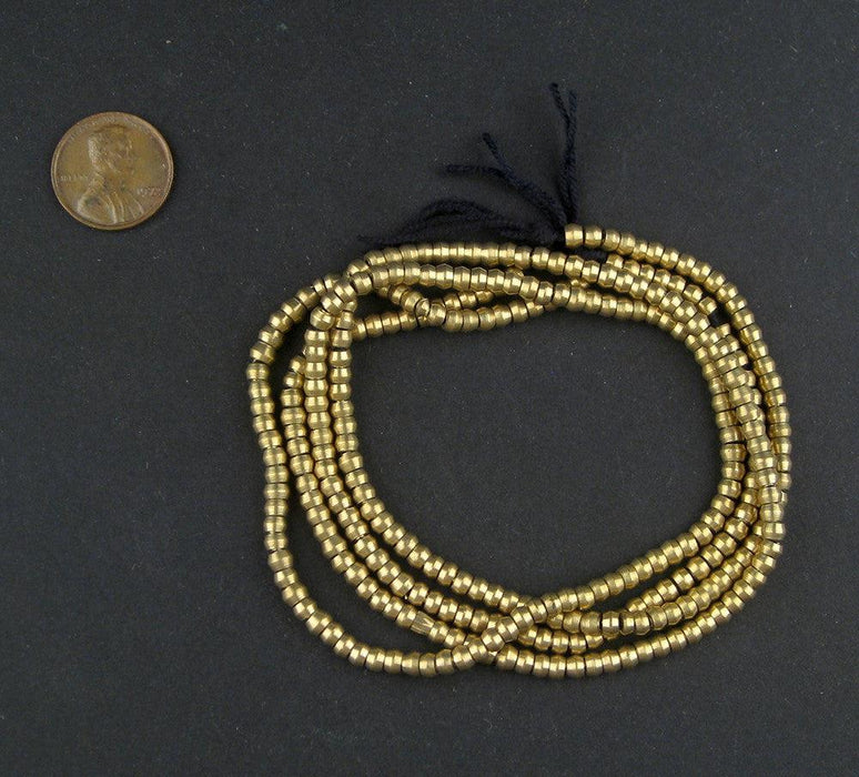 Take a look at these high quality brass heishi beads in a unique truncated barrel-like shape. The strand is approximately 16" long, with beads measuring 2mm wide by 3mm diameter. These versatile beads are great as spacers! Two strands pictured. Each strand is sold individually.