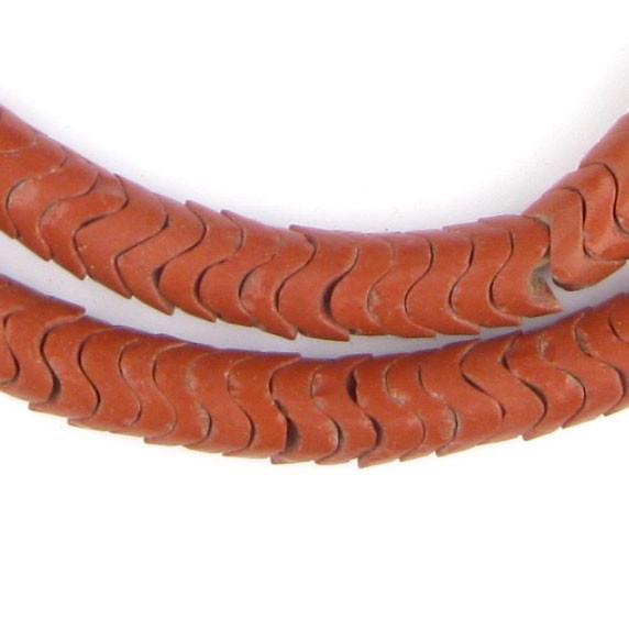 This strand of interlocking Czech glass beads is called "SNAKE" trade beads because of its similarity to the snake vertebrae. They date back from the early 1900's. These beads have been molded and have a beautiful brown color. They work great as spacers. The beads are about 8.5-9mm in diameter, and tones may vary slightly. Some beads may be chipped or show some small imperfections due to age.