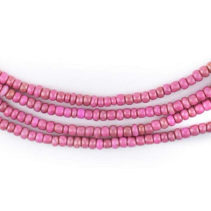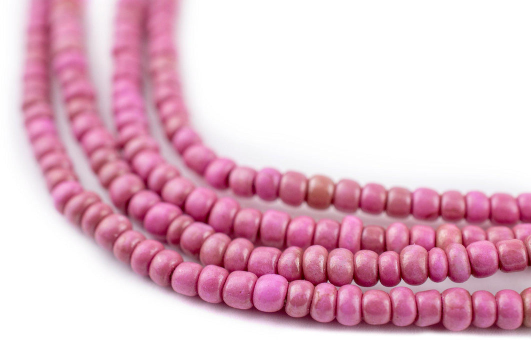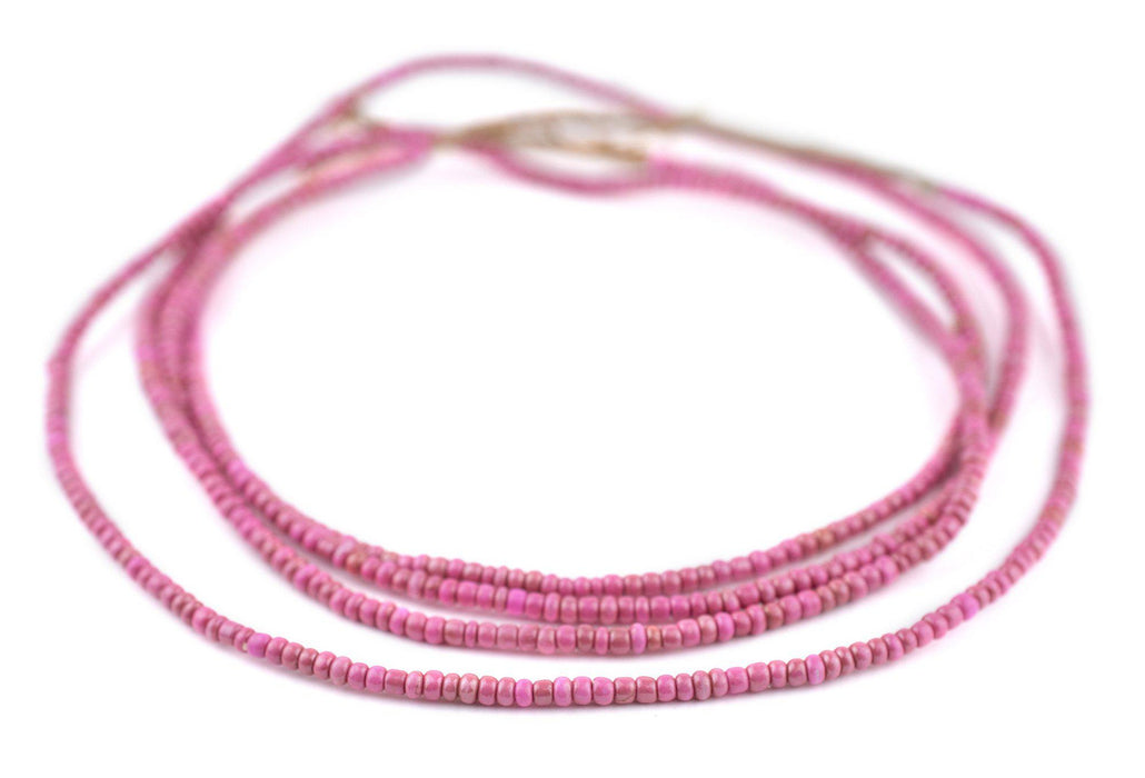 The bright color of these pink seed beads is fun and cheerful. These beads have been strung by hand and finished at the top with traditional raffia straw. The 28" length of the strand makes these beads suitable to wear as is or use as colorful addition in your unique jewelry creations. Individual beads measure approximately 2mm wide by 3mm diameter with a hole size of about 1mm. Shade of pink may vary slightly from photo.