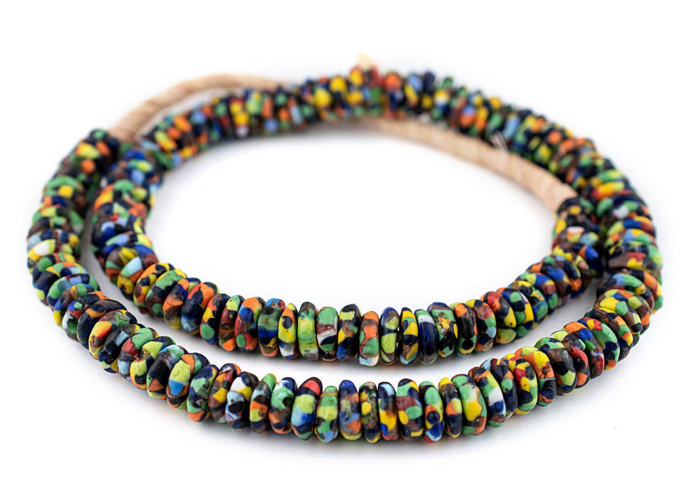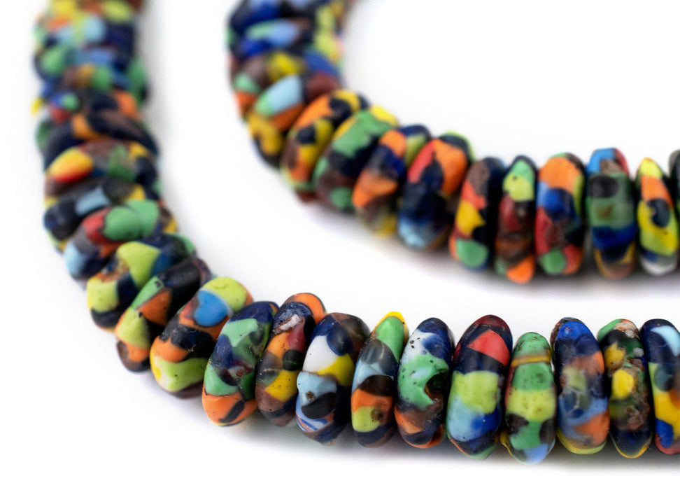 Bright Rainbow Medley Fused Rondelle Recycled Glass Beads (11mm)