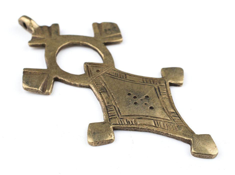 This beautiful pendant was crafted in traditional Tuareg design. The Tuareg are a nomadic desert tribe that inhabits a broad expanse of territory stretching from the edges of the Saharan desert of Morocco to the north as far as Burkina Faso in the south. Each pendant features a unique design that may include the Milky Way, Berber Cross, Southern Cross, Shooting Star or other motifs made from white metal. Each pendant measures approximately 92x47mm in size. Each pendant is unique and may show some minor variation from picture.