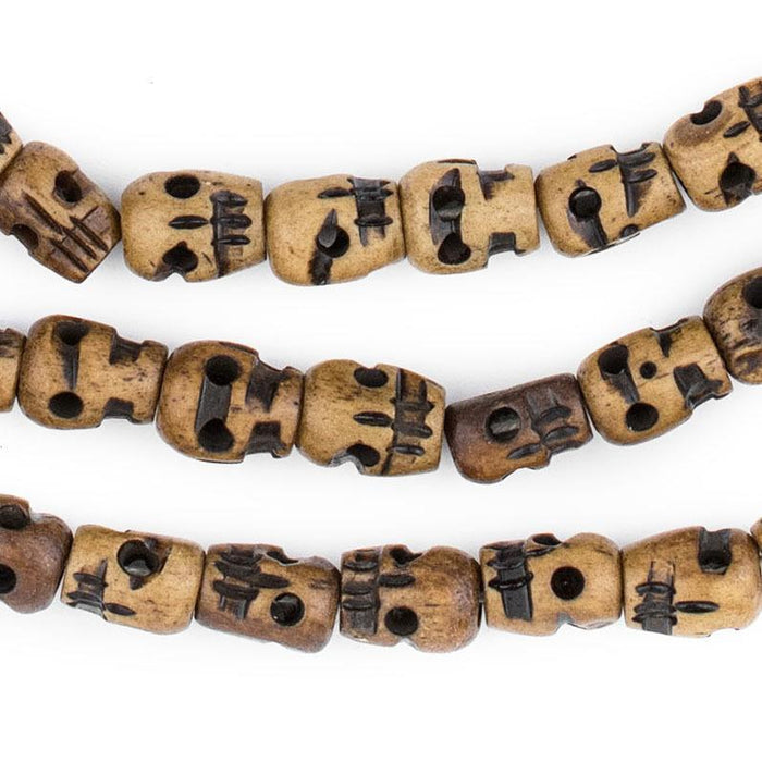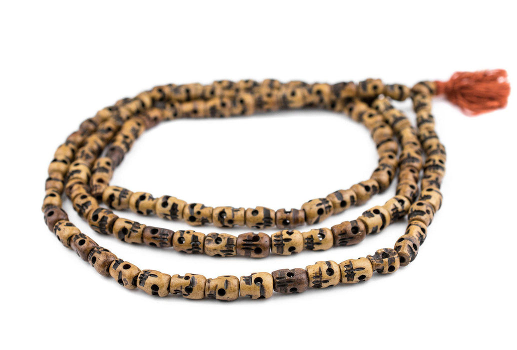 Brown Carved Bone Skull Mala Beads (12x8mm)(Long Strand)