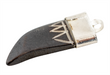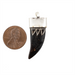 Whimsical bone pendant in the shape of a tooth. Each pendant has been individually carved with an interesting serrated pattern and finished with a white metal bezel. String it on a cord to make a simple necklace or incorporate in your own unique designs. Each pendant measures approximately 35-40mm long by 14mm in the side-to-side direction.
