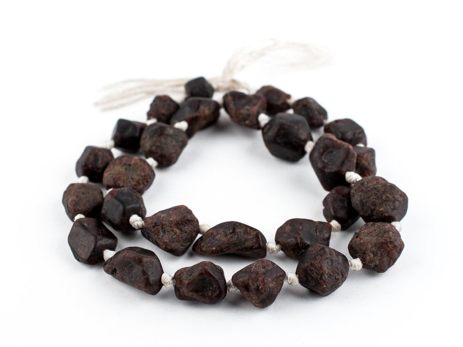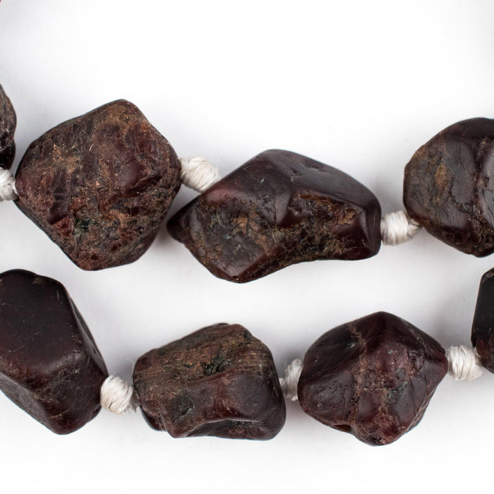 These natural Garnet Stone Beads will make for a striking accent in your custom necklace and bracelet designs. They would also look great as an earthy boho necklace. Many people believe that Garnet Stone Beads have various metaphysical healing properties. For example Brown Garnet Stone Beads and Jewelry may help activate your Sacral Charka and will help assist you in overcoming the fear of new experiences. Each Garnet Stone Bead Strand is about 20" in length with individual beads measuring approximately 11-21 x 10-16mm and a 1.5mm hole. The beads have been strung on a cord with knotting in between. Each strand is unique and may vary slightly from photo. Try a strand today!