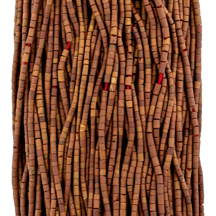 These beautiful heishi beads are made of authentic brown jade stone from the mines of Afghanistan. Each unique strand is about 14" in length. The beads measure about 2-4 x 3mm with a stringing hole of about 1mm. Each strand comes with approximately 125 beads. Multiple strands are pictured. Each strand is sold individually.