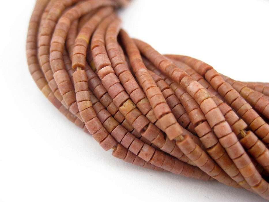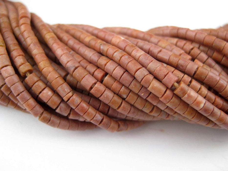 These beautiful tiny heishi beads are made of authentic brown jade stone from the mines of Afghanistan. Each unique strand is about 13 inches long with beads measuring 4-5mm wide by 4mm diameter. Multiple strands shown. Current stock slightly wider than pictured. Strands sold individually.