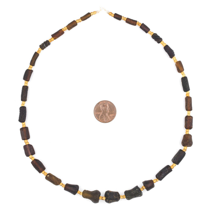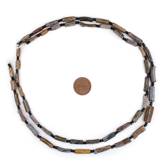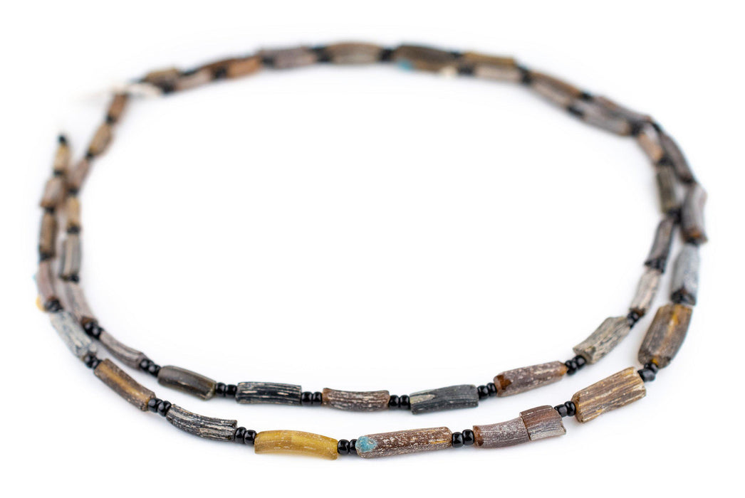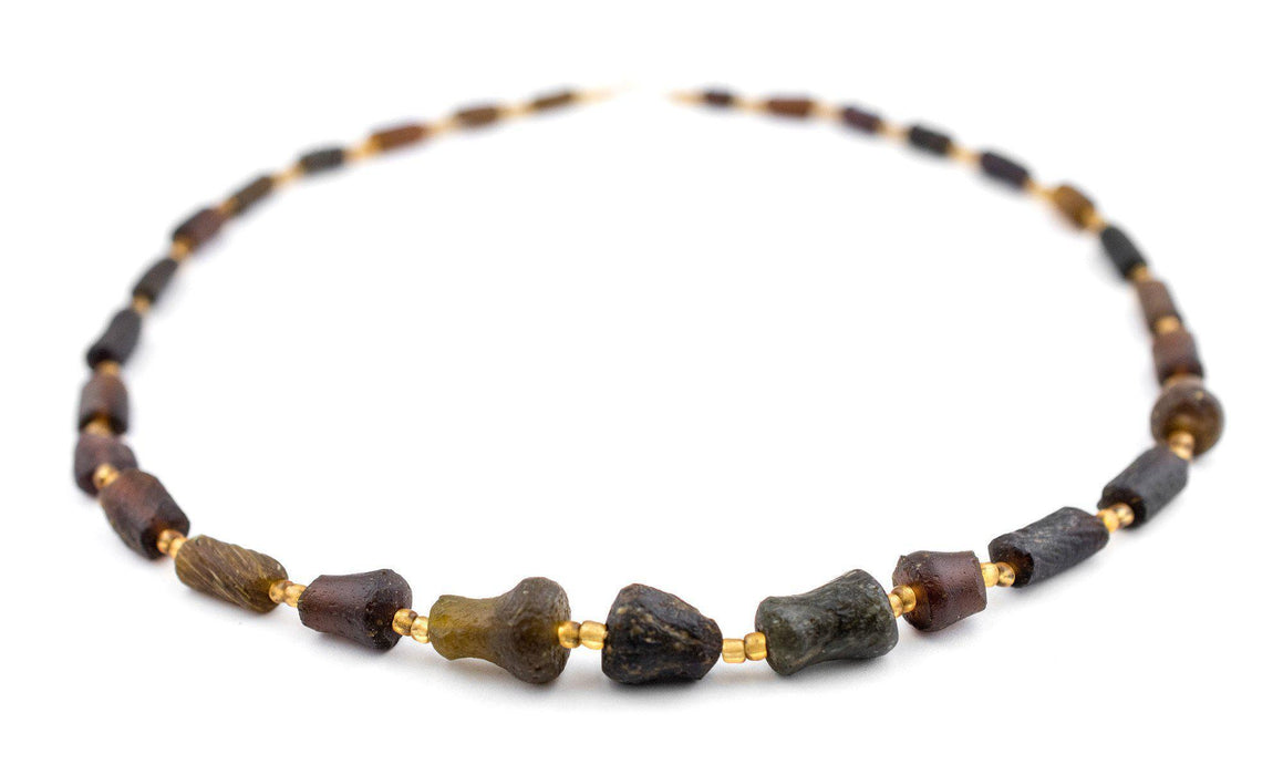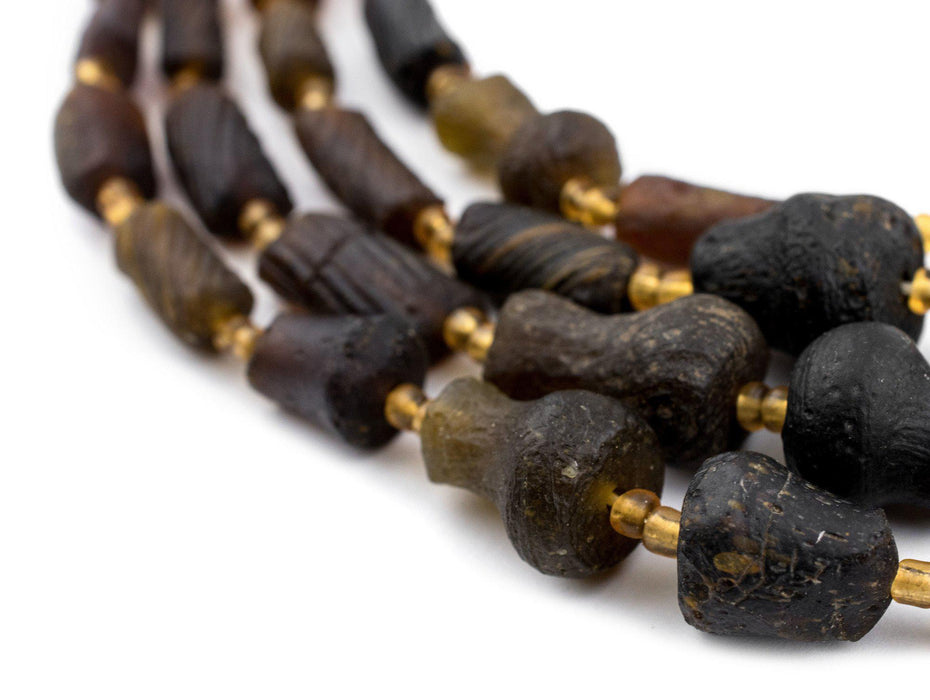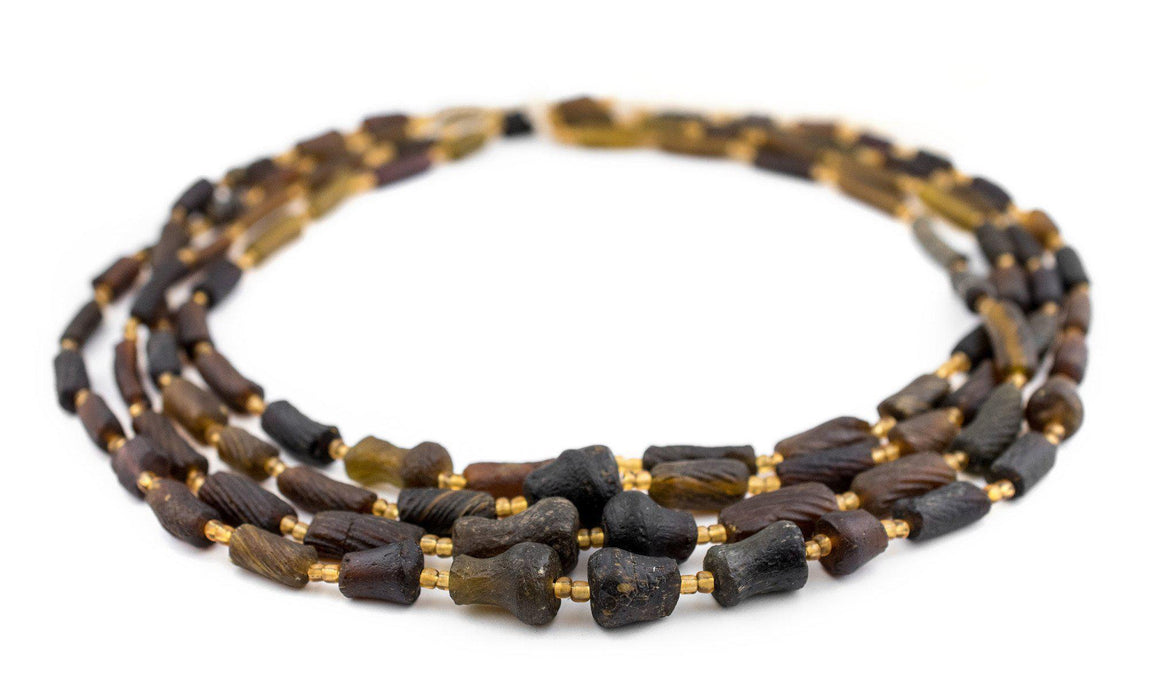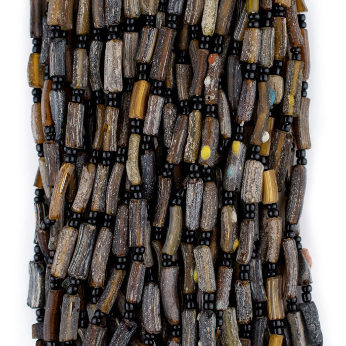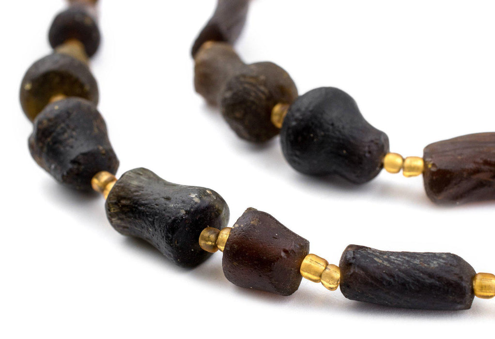 Take a second to appreciate the beautiful tones of these rustic Brown Afghani Bangle Beads. Afghani Bangle Beads are said to be very old and are made using pieces of antique Afghani Bangles, also sometimes identified as Roman Glass. Each individual bead has a noticeable amount of nooks and crannies giving them a stunning and striking weathered look. These beads truly have a remarkable story to tell. These special beads may be used to add a naturally toned pop of color to your original designs. Each bead strand is about 16" in length. Each individual bead is approximately 8-17 x 4-13mm and roughly has a 1.5mm bead stringing hole. Multiple strands pictured. Each strand sold individually. Tones may vary slightly from strand to strand. Grab a strand for yourself and own a piece of history today! Note that while the material is said to be of old, possibly ancient origin, the precise age of the glass has not been independently verified.