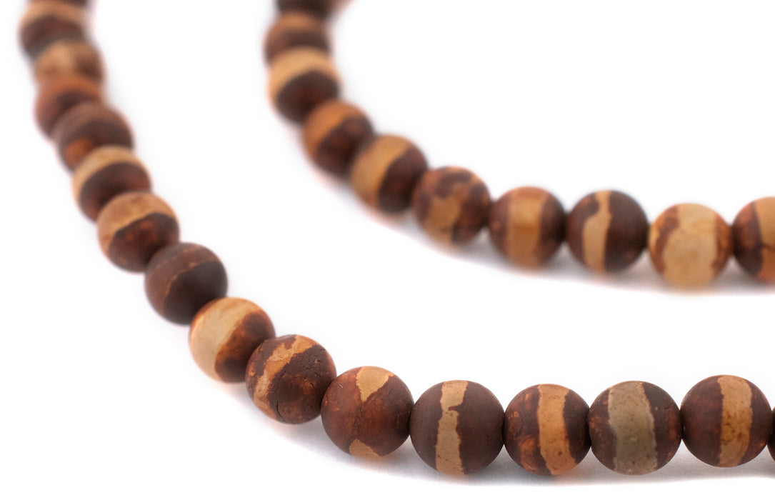 Brown Striped Sphere Tibetan Agate Beads (6mm)