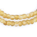 Recycled glass beads are a type of indigenously produced African bead from Ghana West Africa. These beautiful brown color recycled beads are made using an old method that has been used for centuries. The glass itself is derived from a variety of recycled sources including old beverage and medicine bottles. The procedure for making the beads consists of a number of steps whereby powdered glass is poured into molds of clay and baked in a specialized oven. These beads are produced in large part by the Krobo tribe and through recycling glass are environmentally friendly.
