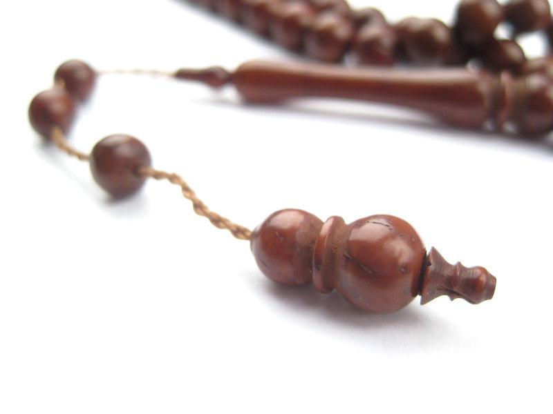 Evocative of a lost world, these beautiful Arabian prayer beads have been handcrafted by a master artisan. Look carefully and you will see that each bead has been exquisitely carved with meticulous detail, a quality of work hard to find in today’s day and age. The refined quality of these beads belies the long journey they have traveled through the back alleys and markets of North Africa. Prayer beads such as these embody the intersection artistic expression and faithful devotion that are a cornerstone of the Islamic world. Each bead on this strand measures approximately 7 x 7mm with hole size of 1mm and strand length of 32" long. Use as-is or to accent your beaded creations. Limited Supply. Get yours today!