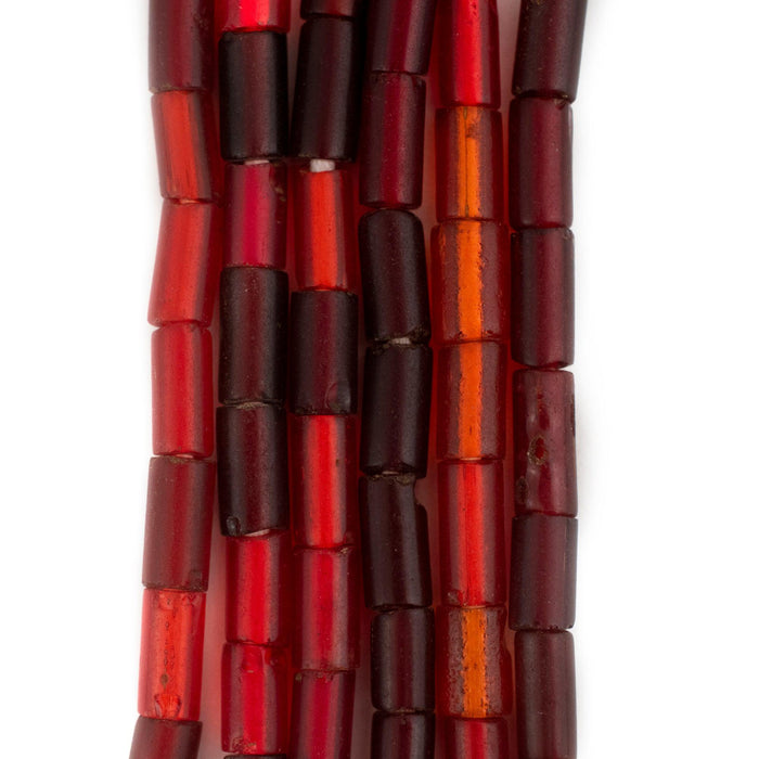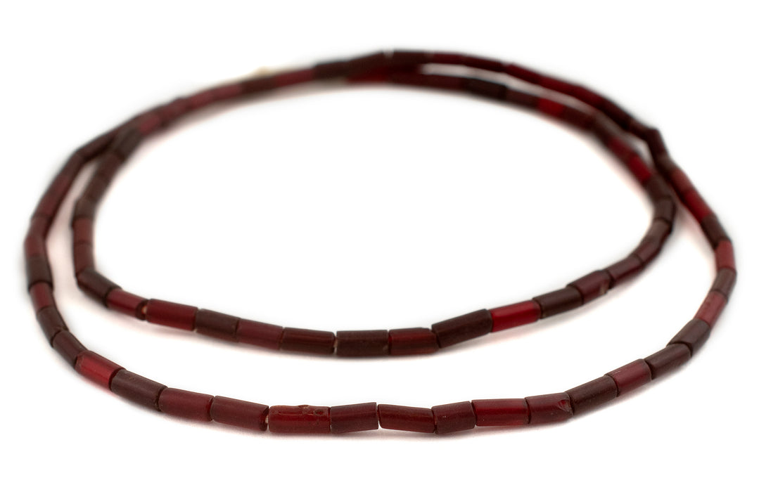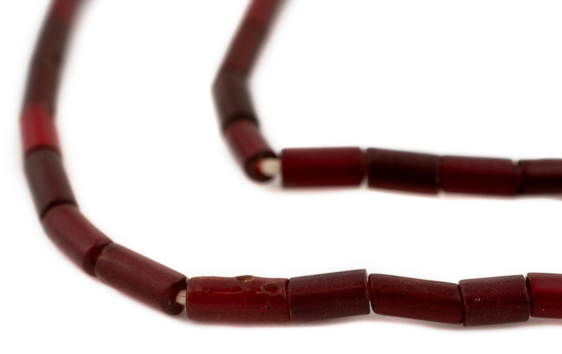 Burgundy Red Translucent Vintage Glass Tube Beads (8x4mm)
