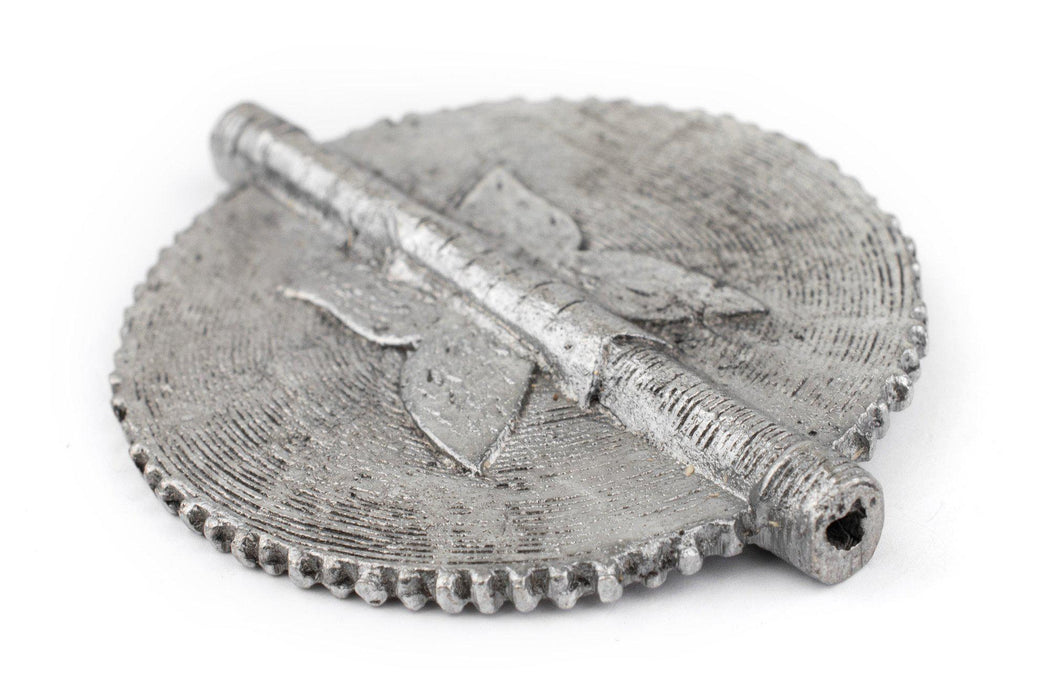 This beautiful silver bead is hand casted in the design of the traditional "Baule sun" from the Ivory Coast. Increasingly difficult to find, Baule (also known as Baoule) tribal beads are some of the most unique casted beads from West Africa. Each bead measures approximately 75 x 65mm, with a hole size of approximately 2mm. We've partnered with a special workshop to bring this unique treasure to you. Pay close attention to the detail and note the high quality finish of this special bead. Great as a pendant centerpiece on your next jewelry design!