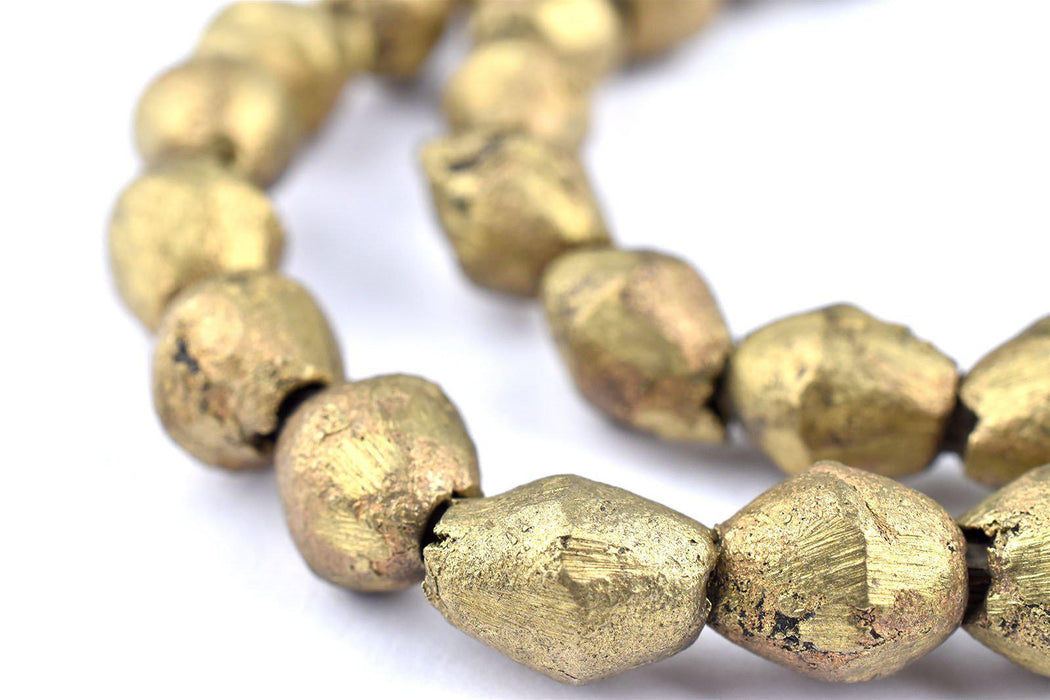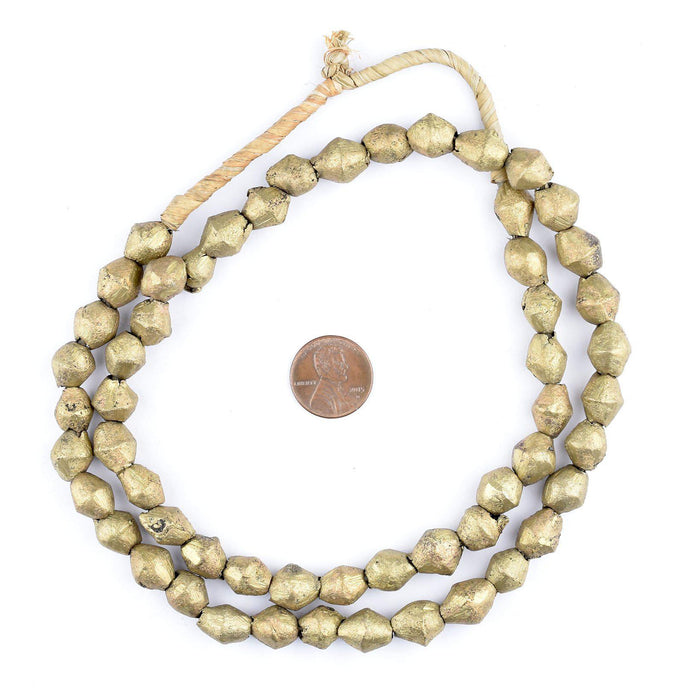 Here is a beautiful strand of brass bicone from Cameroon. These beads are becoming increasingly difficult to find. Each bead is handmade individually. The strand is a long 27", with beads measuring approximately 10-13 x 9-10mm.