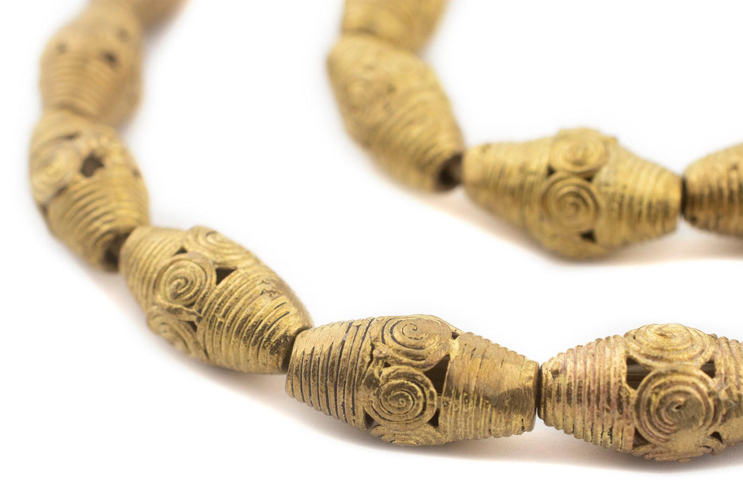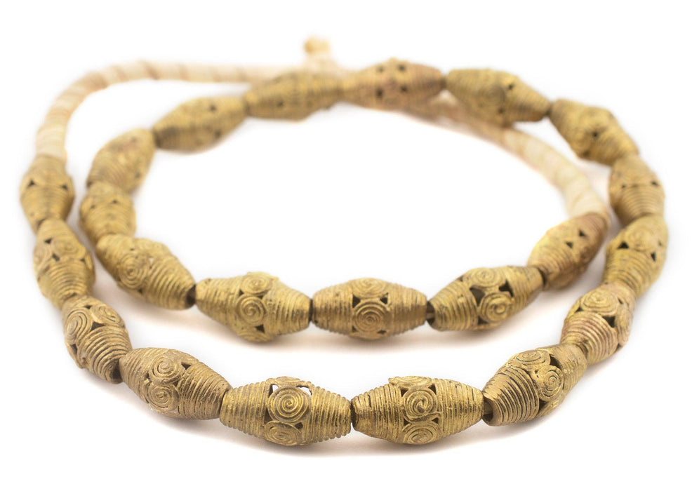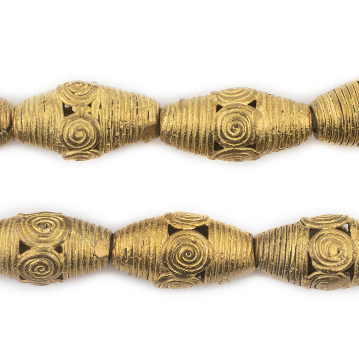 Cameroon-Style Brass Filigree Oval Beads (24x12mm)