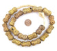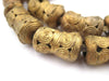 Take a look at these cylinder-shaped Ghana Brass Trade Beads from Africa. Each bead is made individually through the "Lost Wax process" technique. This strand is about 24", with beads measuring approximately 23-26 x 11-15mm. Each strand may have 1-2 beads that are less than perfect and design may vary slightly from strand pictured.