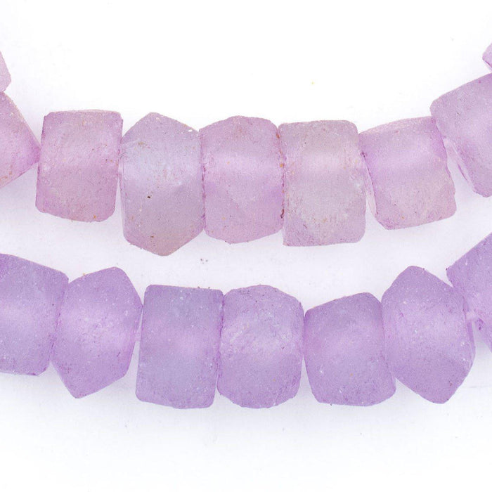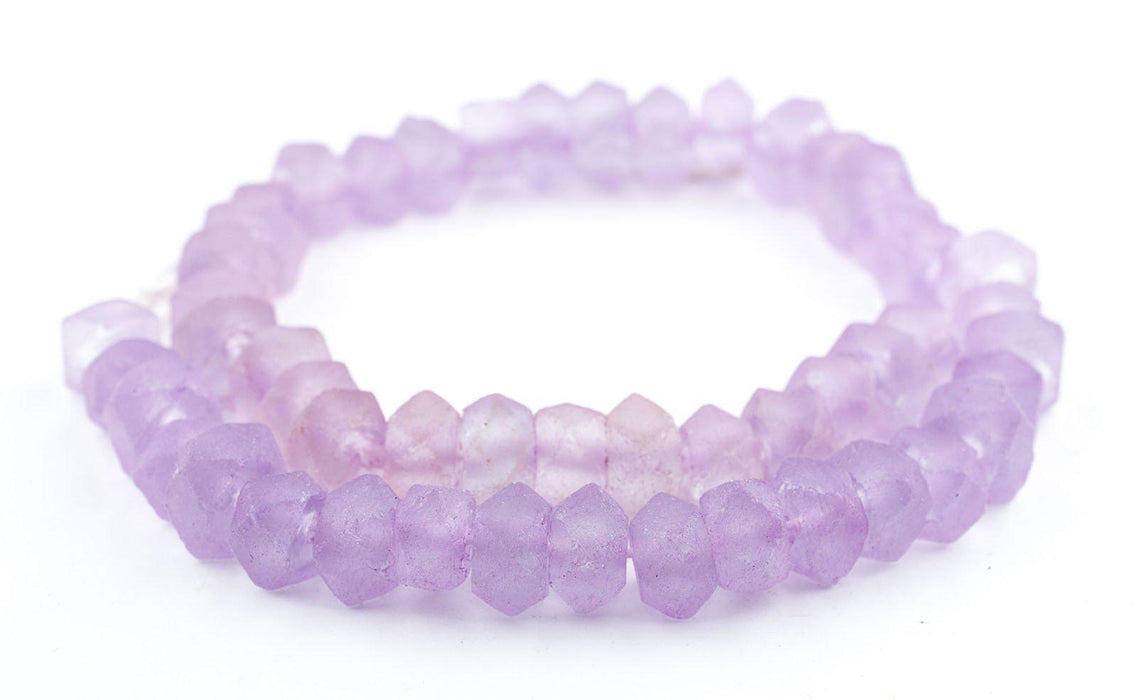 Beautiful strand of recycled glass beads from the island of Java. These unique purple color beads have been fashioned so that they look like pieces of rock candy crystal! Unique translucence let's light pass through. Tone and shade of purple may vary slightly from photo. Limited Supply!