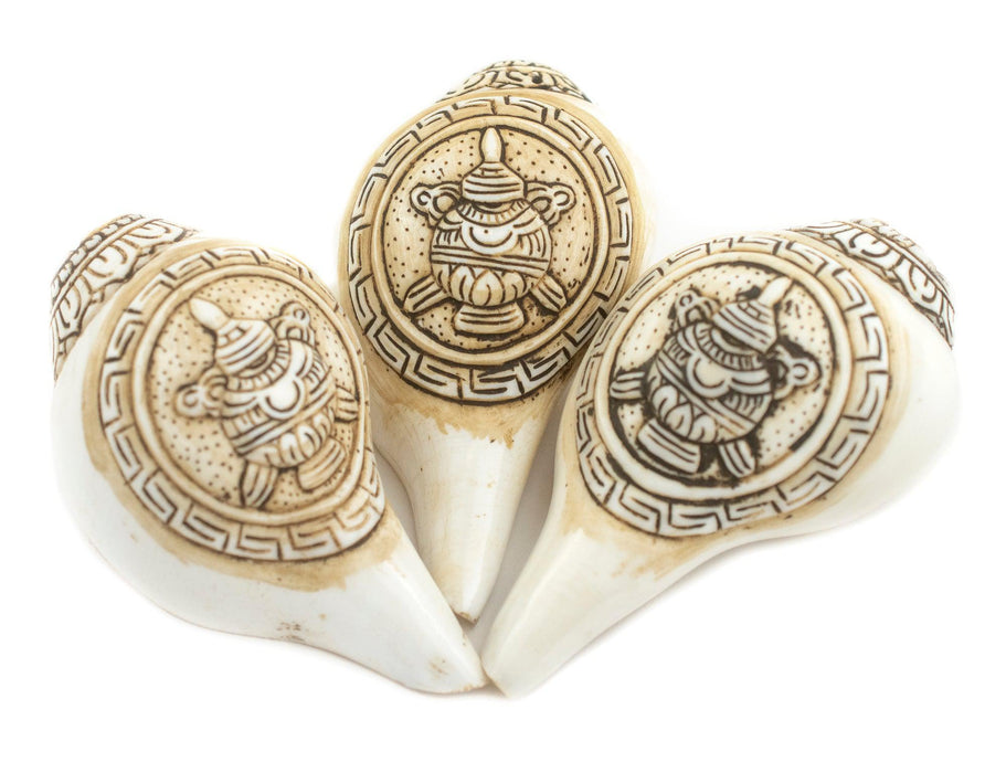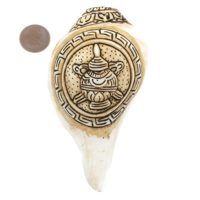 Carved Ashtamangala Conch Shell (Treasure Vase)