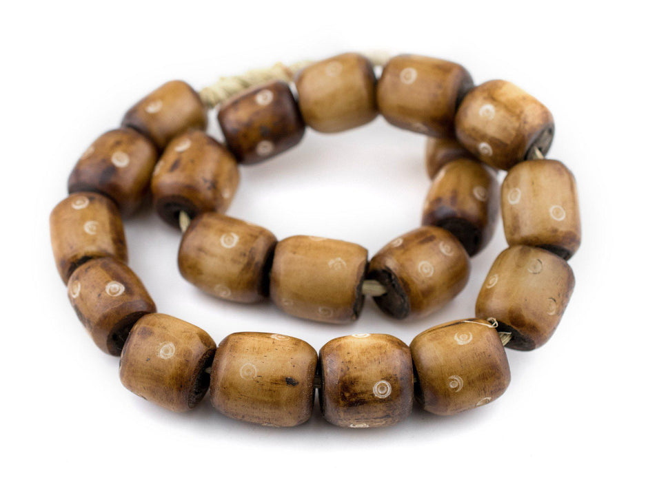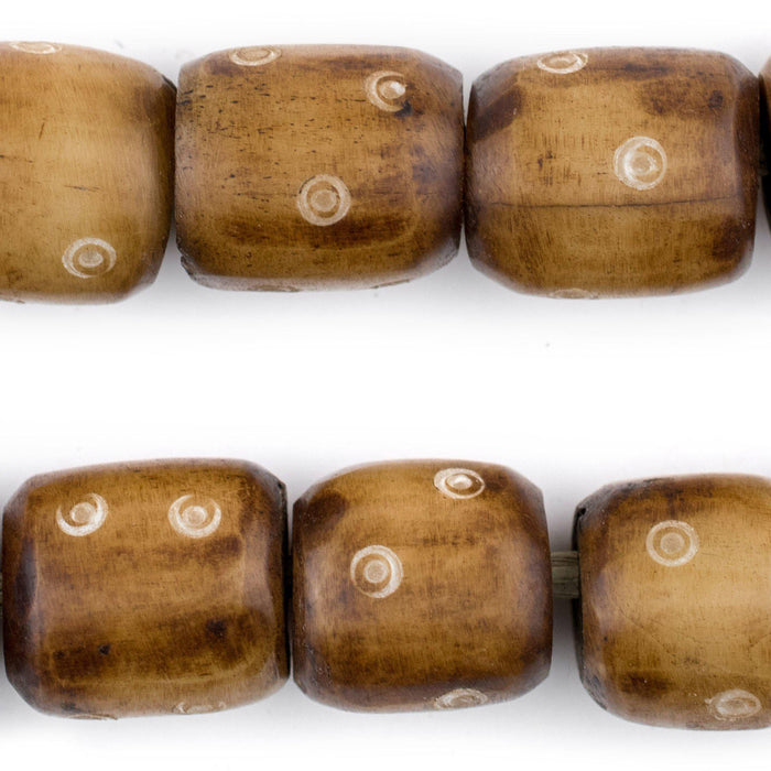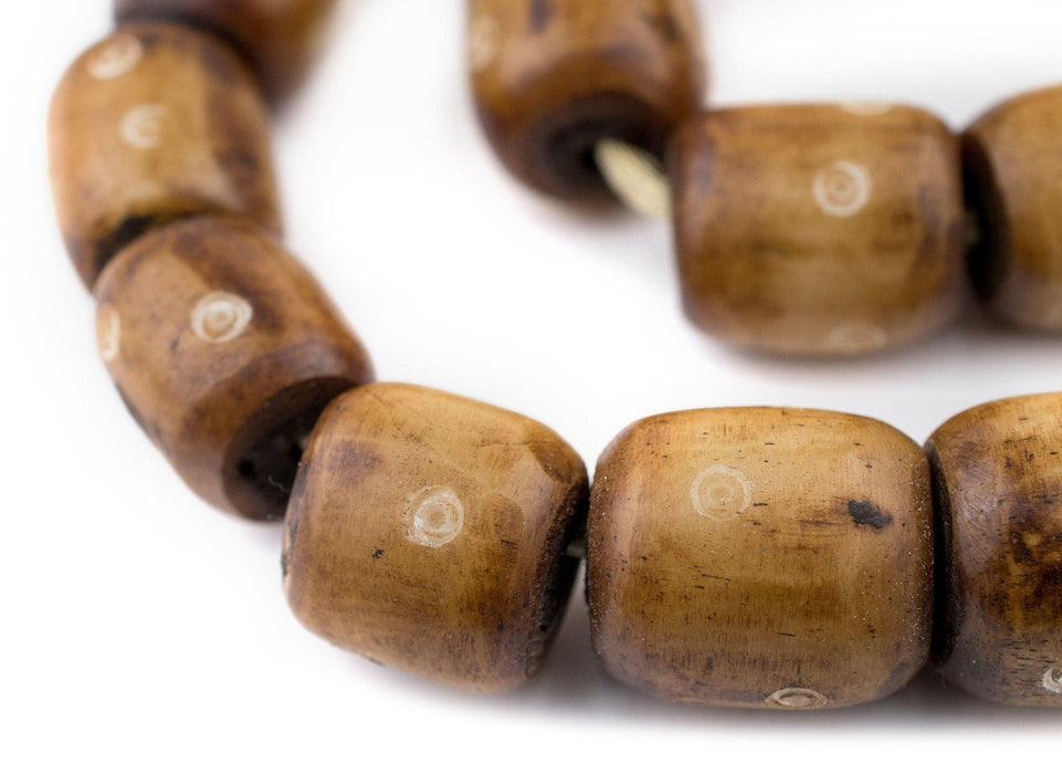 Carved Light Eye Brown Bone Beads (Barrel)