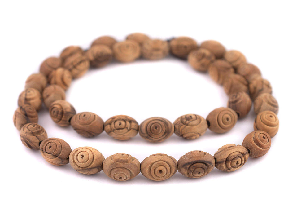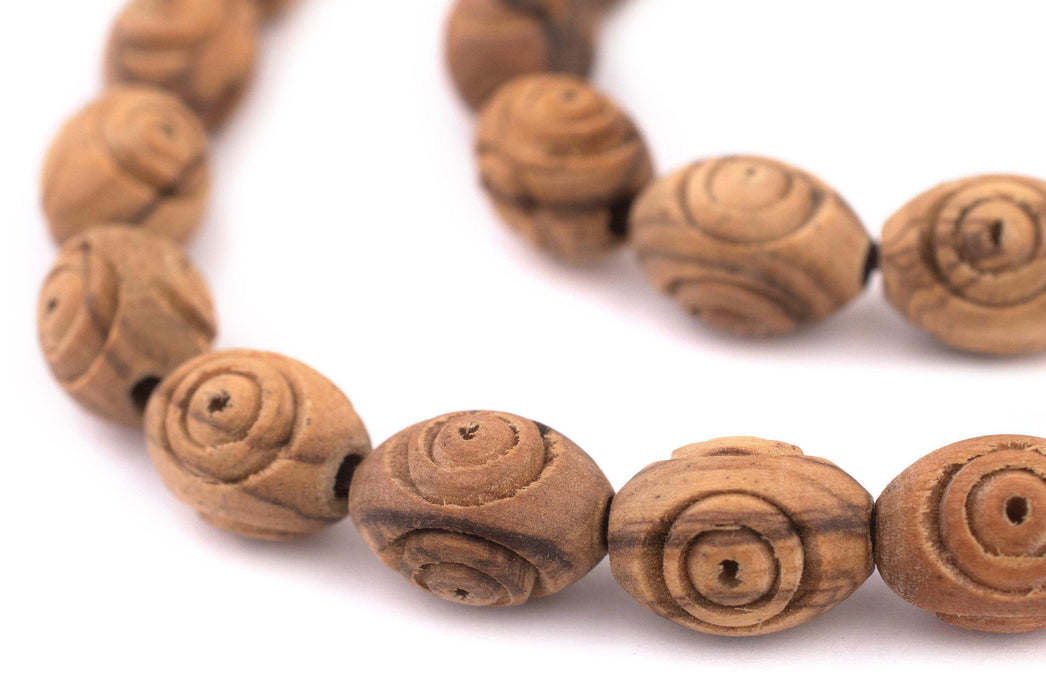 Carved Oval Olive Wood Beads from Bethlehem (16x12mm)