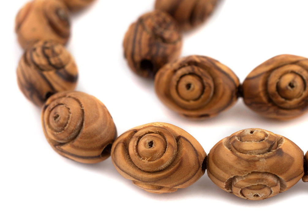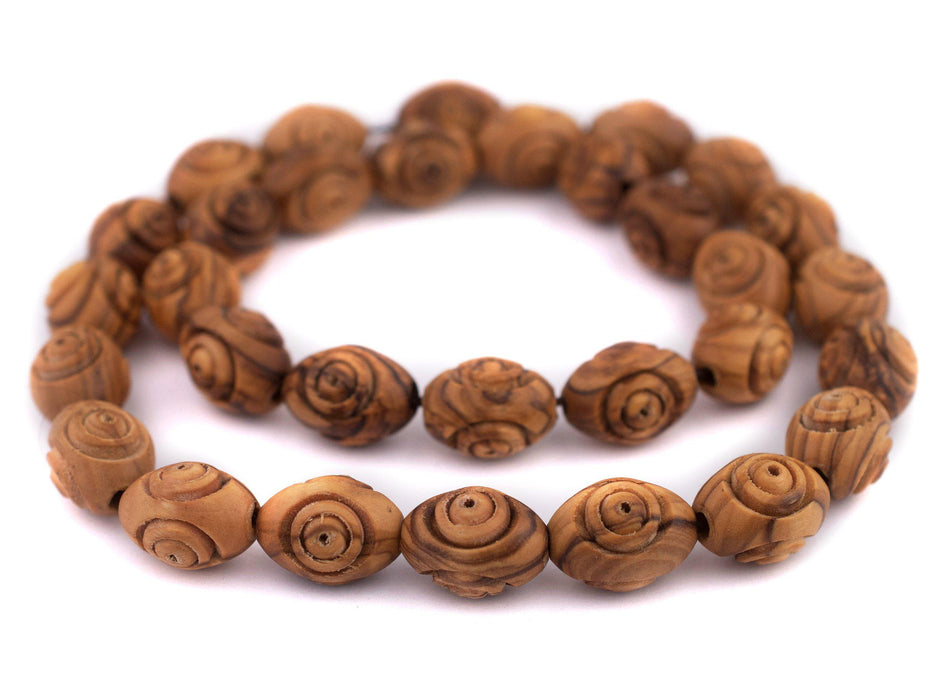 Carved Oval Olive Wood Beads from Bethlehem (20x14mm)
