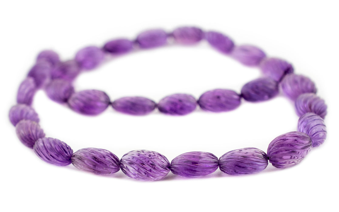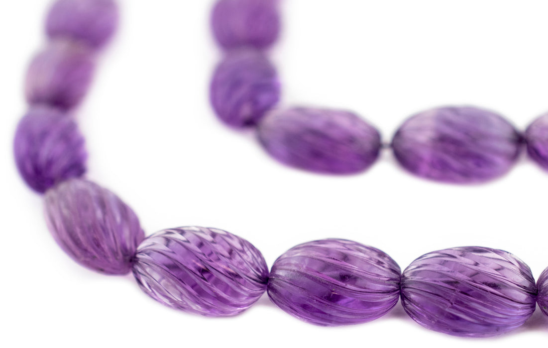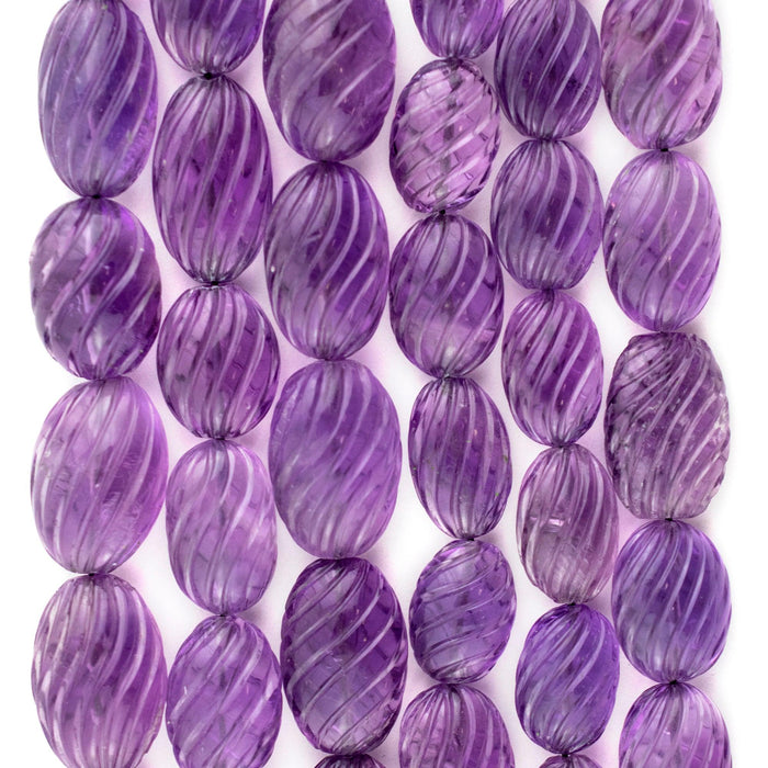 These Amethyst Spiral Beads are the perfect centerpiece bead for your next jewelry design. Tumbled, carved and polished with beautiful natural patterns and hues, these beads have an elegant translucent purple color. Each bead measures approximately 16-28 x 13-20mm with a hole size of approximately 1-2mm. You will receive a full strand measuring approximately 20". Each strand is unique in its own way and will vary slightly from the featured pictures above. Whether worn in combination with other gemstones or as the sole star of your next jewelry design, these gorgeous beads will never disappoint. Limited stock, grab a strand for yourself while you still can.