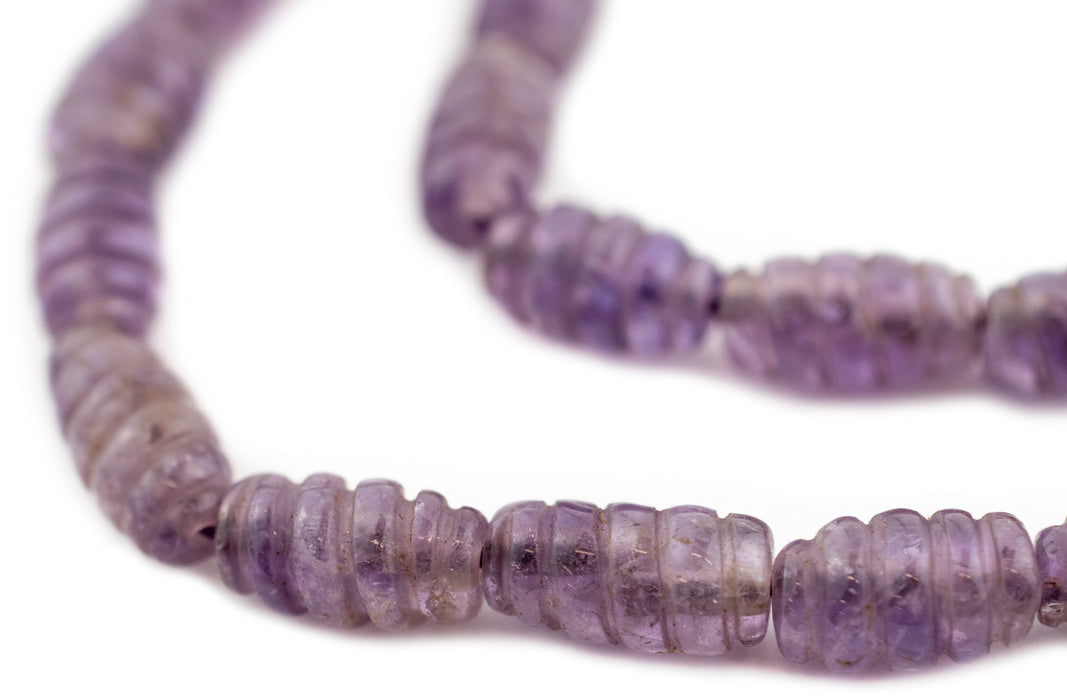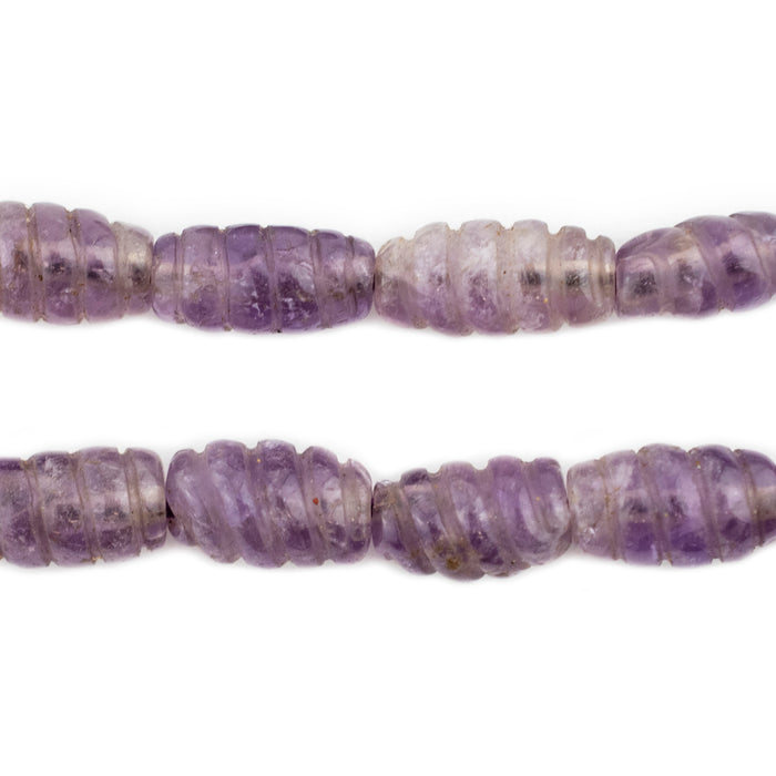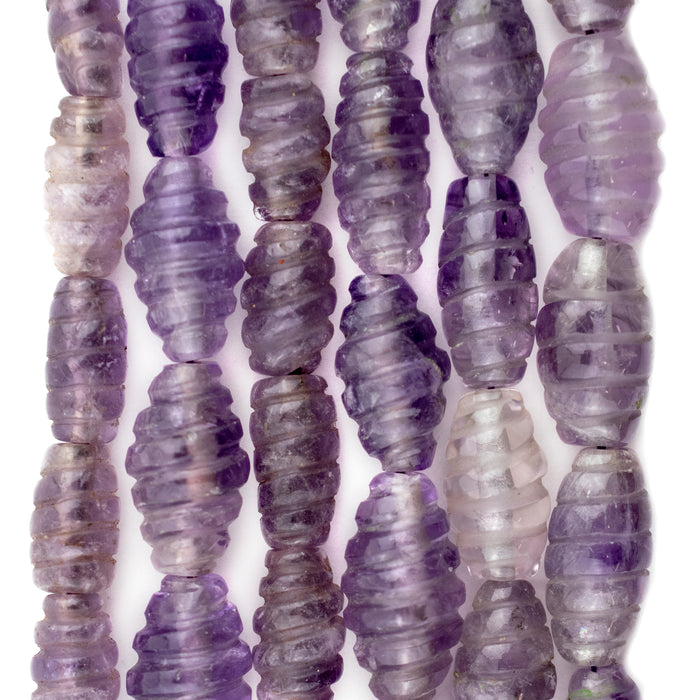 Carved Spiral Oval Amethyst Beads (8-15mm)