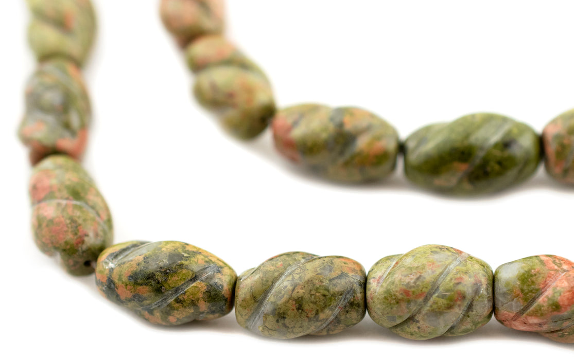 Carved Swirl Oval Unakite Beads (17x11mm)