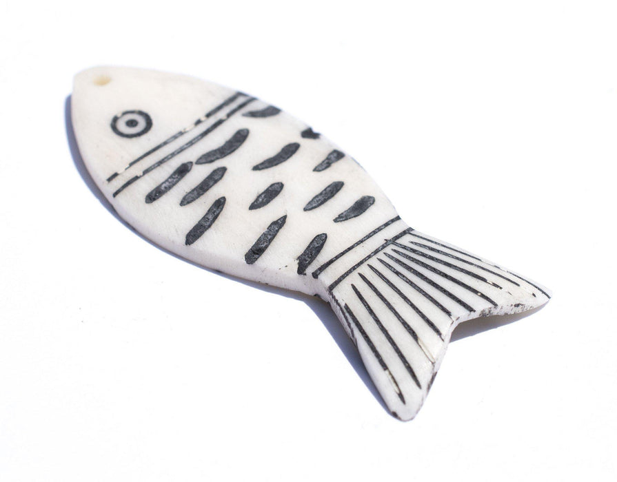 Carved White Kenya Bone Fish Pendant