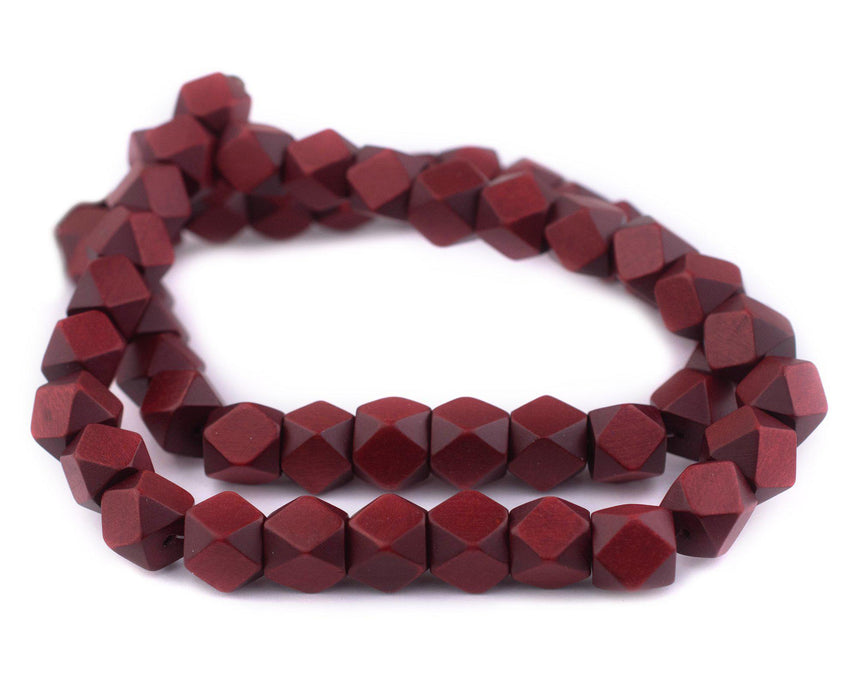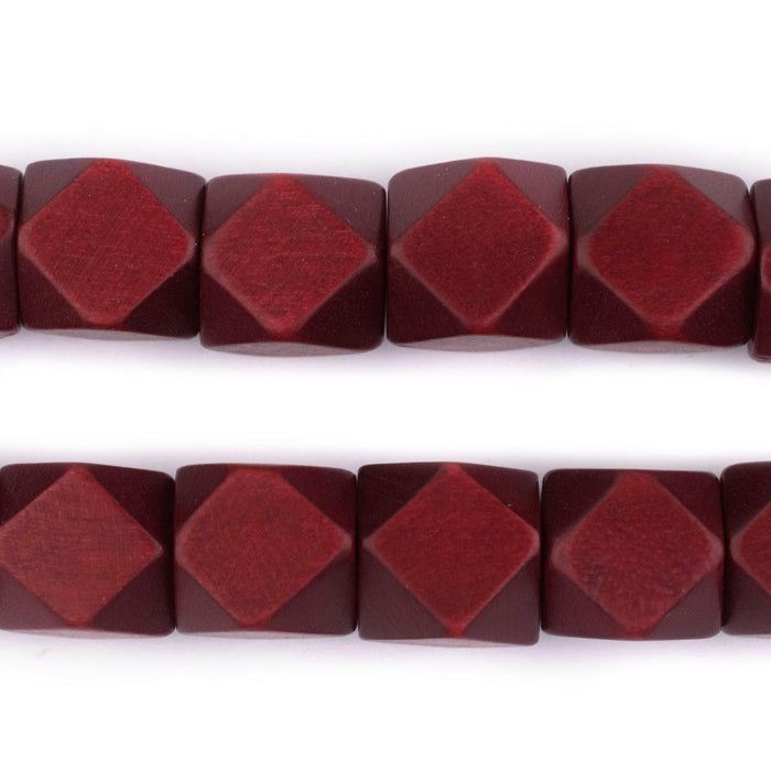 Cherry Red Diamond Cut Natural Wood Beads (15mm)