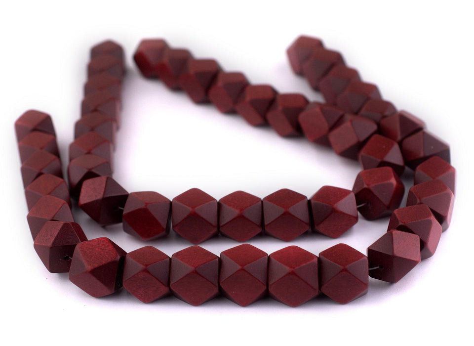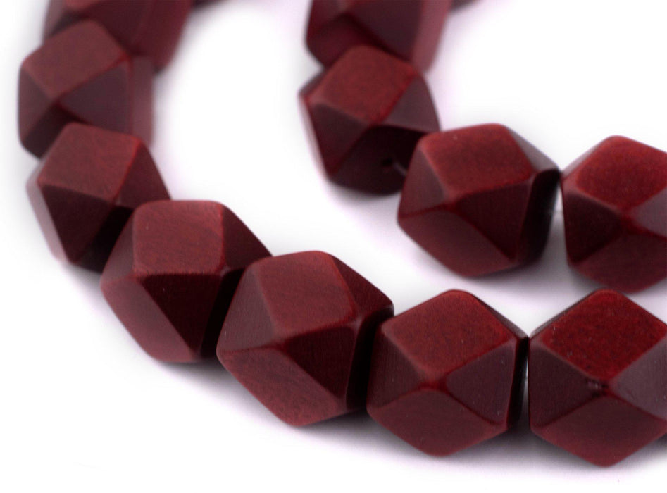 Cherry Red Diamond Cut Natural Wood Beads (17mm)